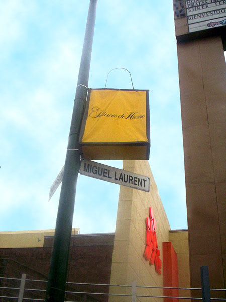 Guerrilla para El Palacio de Hierro. La acción consisitió en colocar estas bolsas con el nombre de la tienda, en los postes de algunas esquinas citadinas, especialmente en aquellos donde hubiera señalización.
