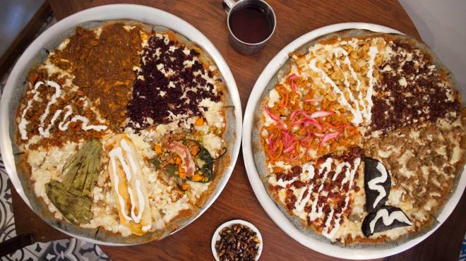El resultado es una selección de Pixzas entre las que destaca la famosa Chayito, con chapulines oaxaqueños sal y limón; la Ray, con clor de calabaza y hutlacoche; y la Desquitada, que literalmente son esquites hechos pixza.
