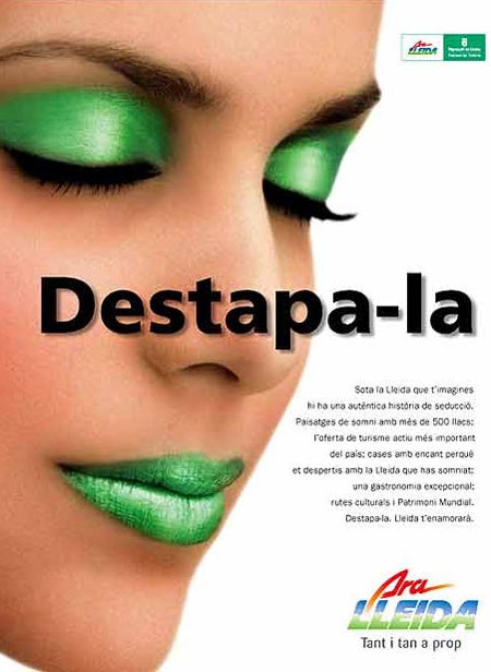 En una acción que se debate entre el señalamiento moral y la mojigatería, la Diputación de Lleida, España, modificará parcialmente la campaña publicitaria del turismo para este verano, sustentada en el rostro de una modelo que aparece junto al eslogan Destapa-la. Es toda tuya. Lo anterior para frenar la polémica suscitada después de que ICV tildase la iniciativa institucional de «sexista».