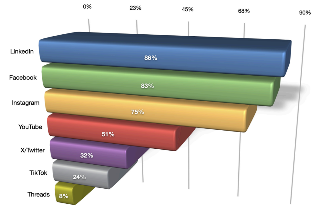 Es importante notar que 25% de las y los profesionales no pautan; que apenas 8% lo hacen en Linkedin (es muy caro) y un nimio 2% en TikTok.
