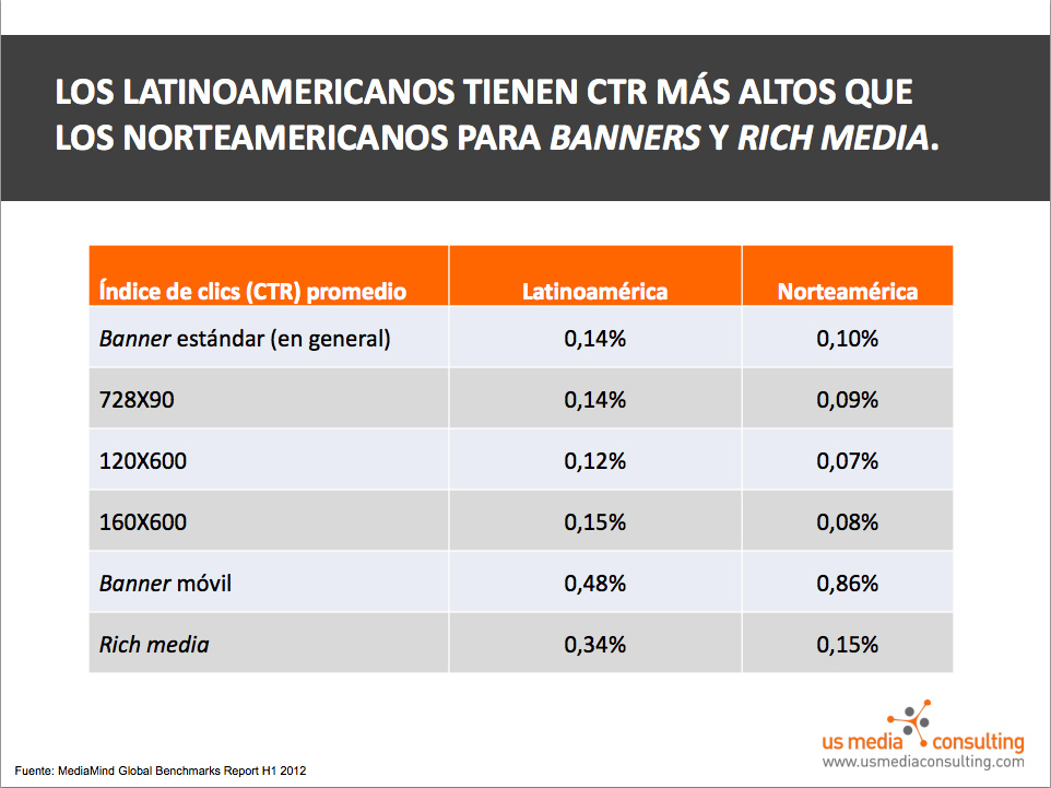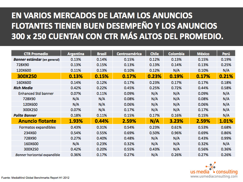 • El CTR de display en Latam no llega al 1% salvo en anuncios flotantes (entre 1% y 3%) [tti link=» Twittea esto»]El CTR de display en Latam no llega al 1% salvo en anuncios flotantes (entre 1% y 3%)[/tti]