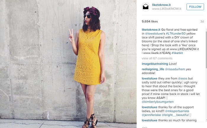 4. Liketoknow.it es otra herramienta para vender en Instagram. Los usuarios de Instagram deben crear una cuenta en Liketoknow.it y dar likes a las fotos que tienen el enlace de Liketoknow.it en la descripción para que reciban un correo relacionado con los productos que ven en la foto. Dando clic van al sitio donde pueden comprar tus productos.