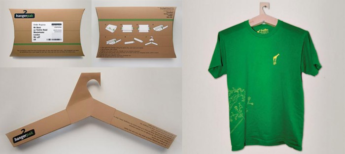 El concepto es bastante simple: comprar camisetas online y tener una percha para las mismas, con un diseño reutilizable, hecho con material reciclado.
