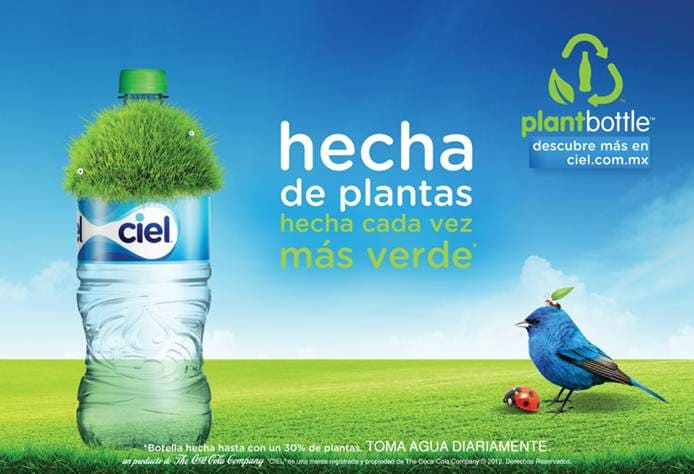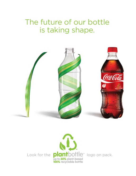 PlantBottle es la botella de PET compuesta hasta 30% de materiales de origen vegetal y 100% reciclable.
