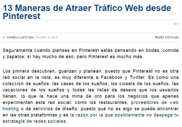- Publica frases de tus artículos en Facebook, Twitter, Instagram y Pinterest en forma de imágenes.