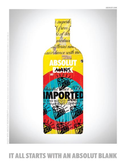 Enmarcado en estos esfuerzos para retomar su sitio perido, y aprovechando su larga y fructífera relación con el mundo del arte creativo (ha habido colaboraciones creativas con artistas como Andy Warhol, Keith Haring, Damien Hirst, Ellen von Unwerth y Spike Jonze), la marca lanzó su campaña ABSOLUT Blank, buscando una nueva generación de artistas, poniendo como lienzo su simbólica botella.