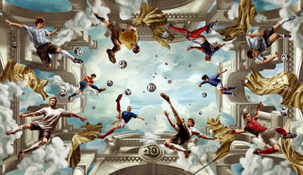 La agencia responsable es TBWA\Berlin, quien creó una fantástica alegoría de la Capilla Sixtina, versión fútbol. Al menos así lo declaró Stefan Schmidt, Co-Chief Creative Officer, quien dijo «Este fresco presenta a 10 súper estrellas del fútbol, exactamente como millones de entusiastas fanáticos alrededor del mundo los ven -como dioses del fútbol-«. El nombre de la obra es El «+10″, mide apróximadamente 40m de largo y 20m de alto y es creación del ilustrador de Hamburgo, Felix Reidenbach. La obra incluye a jugadores como Michael Ballack, David Beckham, Zinédine Zidane, Raúl, Kaka, Nakamura, Lukas Podolski, Lionel Messi, Juan Román Riquelme y Djibril Cissé.