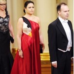 Teija Vesterbacka es la esposa de Peter Vesterbacka, el creador del popular juego Angry Birds y CEO de Rovio, asistió a una cena de gala en el palacio presidencial de Finlandia, ataviada ni más ni menos con un brillante vestido rojo… con un ojo y un pico, diseñados discretamente en el costado de la prenda, pareciendo para muchos sólo un detalle textil pero no para los fans del juego que reconocerían de inmediato al personaje central de Angry Birds.
