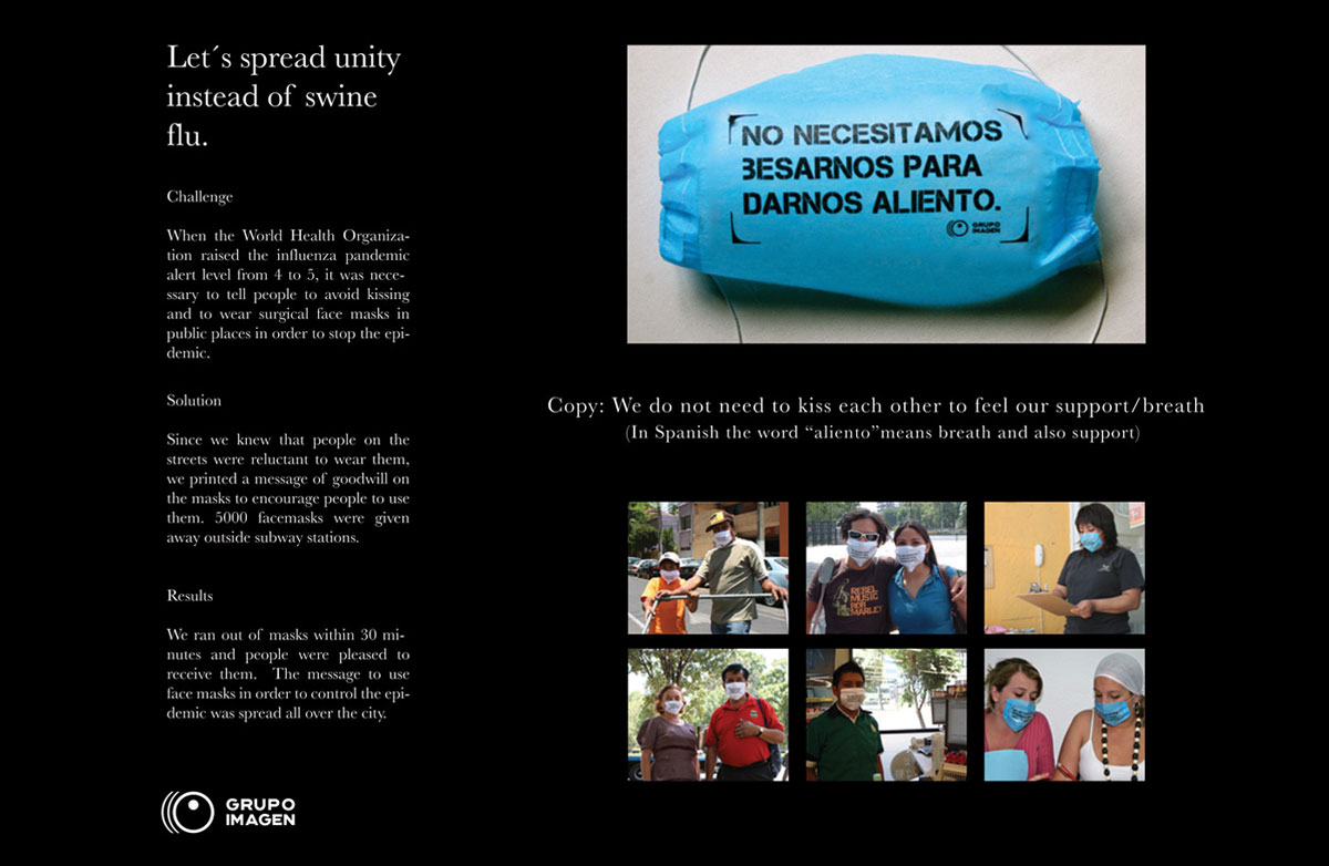 Este BTL fue desarrollado por Grupo Imagen en la Ciudad de México, donde a la llegada de la crisis sanitaria, el gobierno solicitó a la población el uso de cubrebocas y el evitar saludar de beso y mano a la gente.