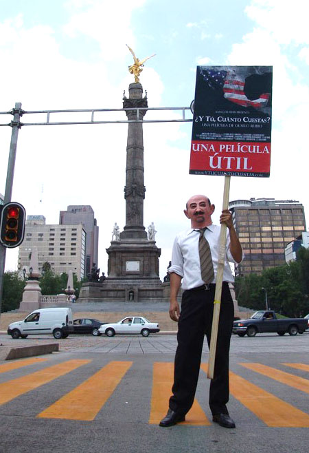 Guerrilla Marketing para publicitar la cinta ¿Y tú cuanto cuestas?, filme que toca temas económico-sociales-polí­ticos de México mayormente. La presencia de un í­cono tan controversial del pasado mexicano sosteniendo la pancarta en una esquina de Av. Reforma, es una idea espléndida, tremendamente económica, divertida e interesante.