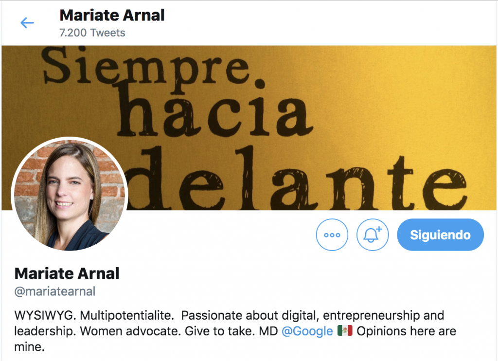 Helos allí… son solo 7 tuits… ¡siete! pero a través de ellos puede sentir el liderazgo de la CEO con mejor reputación en México. Mediante estos pequeños efluvios puedes leer a la líder pero también a la persona; puedes conocerla, inspirarte… y seguirla.