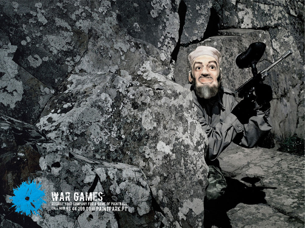 Paintpark utilizó la imagen de Osama para un juego que buscaba reclutar jugadores para paintball. El diseño de estas máscaras del líder terrorista se volvieron populares en todo el mundo.