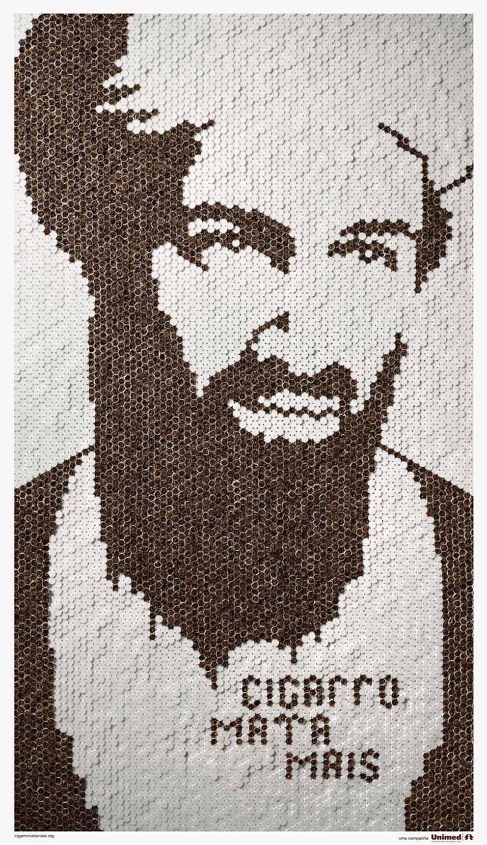 Otro diseño, curiosamente también realizado para que la gente dejara de fumar, fue realizado por Unimed, organización médica en Brasil, que desarrolló el diseño usando el rostro de Osama hecho con tabaco y usando el copy «El cigarro mata más.»