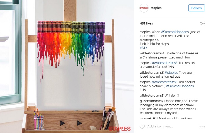 Otro ejemplo; Staples explica que el enlace en el bio les va a dar los pasos para crear esto.