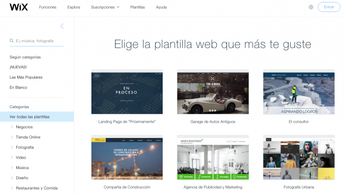 A través de Wix tienes además acceso a una biblioteca de plantillas creadas por diseñadores profesionales, para que puedas adaptarlas a tu sitio web. Hay para marcas personales, tiendas, restaurantes, negocios… la imaginación es el límite.