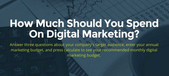 Herramientas como esta calculadora en línea de presupuestos de marketing digital son maneras eficaces de conseguir una buena idea sobre los parámetros para tu presupuesto de marketing digital 2016. Esta calculadora utiliza la metodología descrita anteriormente para darte una idea de en cuáles plataformas de marketing digital invertir. Al igual que con cualquier decisión de las grandes empresas, es importante probar una variedad de herramientas y escenarios antes de decidirse por la mejor estrategia para tu empresa.