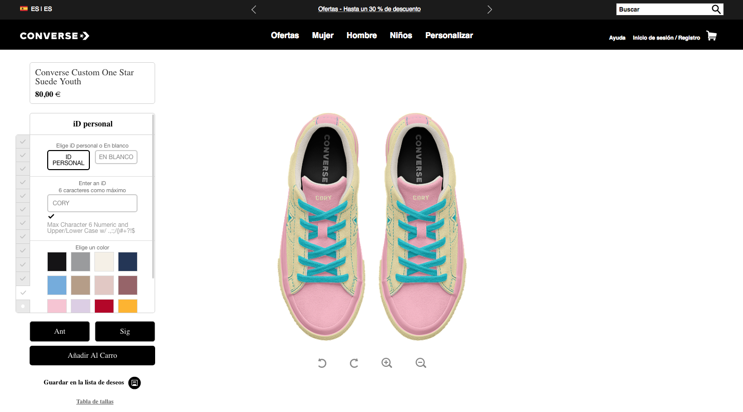 Converse, por su parte, ofrece en su plataforma está herramienta para que sus consumidores imaginen su par perfecto y le permitan a la marca hacerlo realidad.