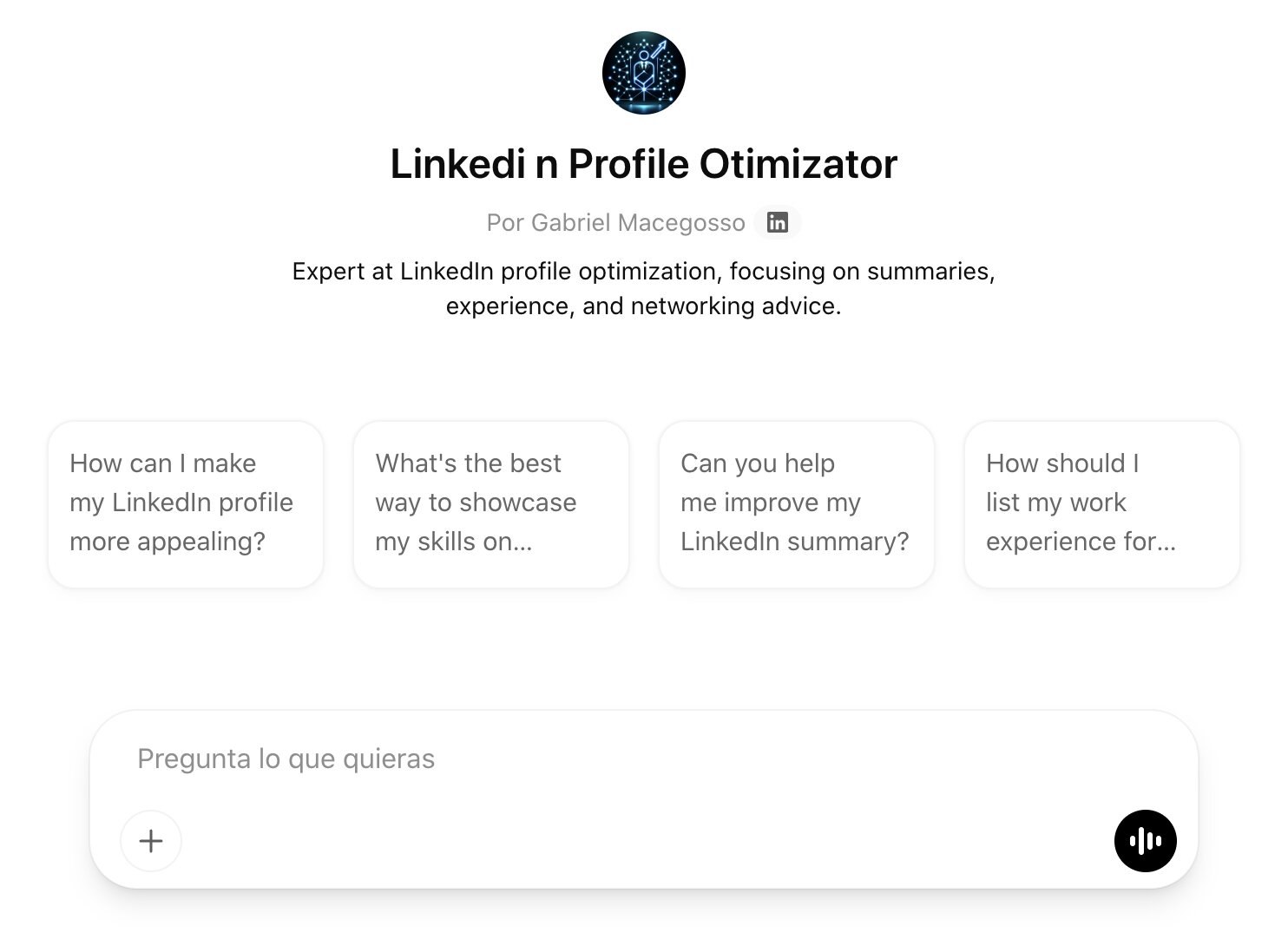 Ejemplo: GPT que analiza y mejora tu perfil de LinkedIn. Puedes verlo aquí.