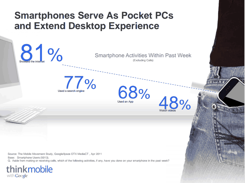 Que Facebook y Twitter son dos de los principales canales de distribución social de nuestro contenido ¿cómo se verá afectado con este hábito que se intensifica día con día? Además de ello, de acuerdo con un estudio de Google, 77% de los usuarios generan búsquedas desde sus smartphones… ¡Casi 8 de cada 10 buscan contenido desde sus teléfonos! [tti link=» Twittea este dato»]¡Casi 8 de cada 10 buscan contenido desde sus teléfonos![/tti]
