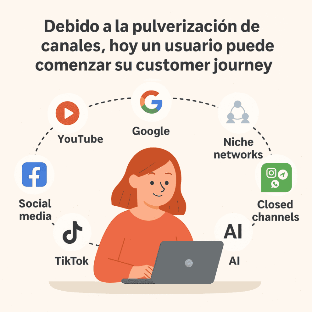 Durante dos décadas, el SEO fue el rey. En el customer journey el objetivo era claro: atraer al usuario mediante una palabra clave, colocar artículos en los primeros lugares de la SERP, anuncios en el buscador o contenidos en redes sociales para llevarlo a un embudo que lo transformara en cliente.