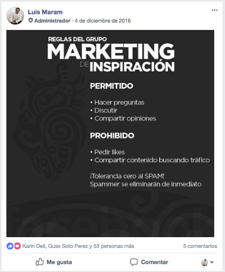 (Este es el mensaje de bienvenida que tenemos en nuestro grupo de Facebook para mantener la comunidad destilada y con calidad)