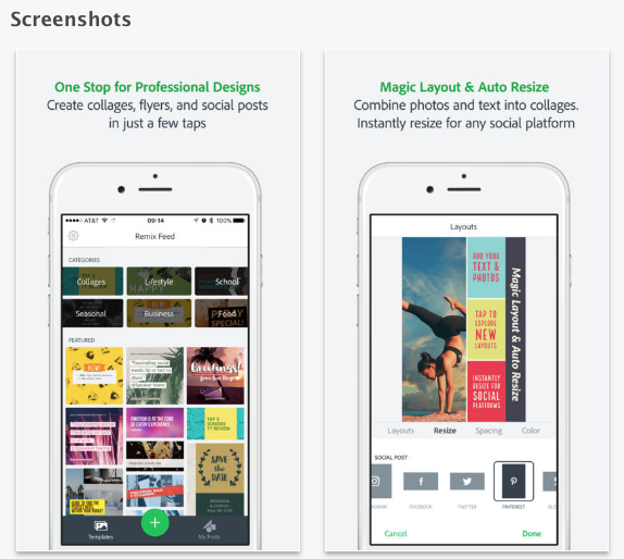 También hay apps que te permiten poner tu logo en cada post que agregas a Instagram. Spark Post de Adobe es una de ellas.