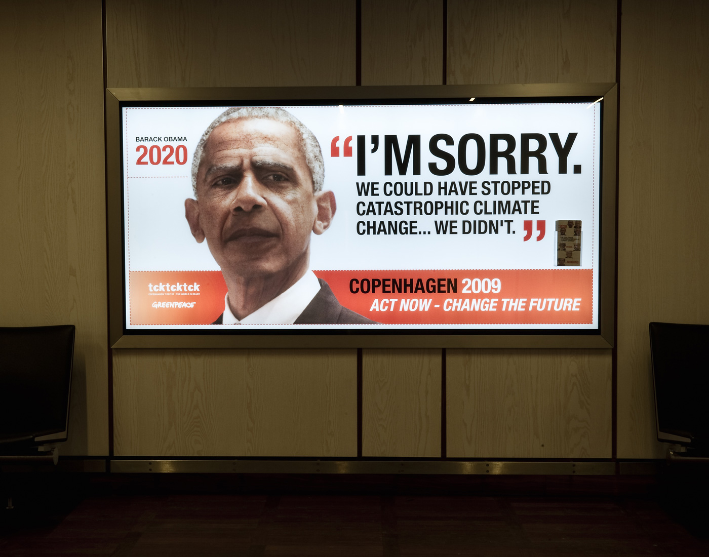 Se trata de una colección de anuncios para exteriores donde los líderes mundiales se disculpan por no salvar el clima; “Pudimos pararlo, pero no lo hicimos”, dicen los mandatarios envejecidos. “Lo siento”, dicen Barack Obama, Nicolas Sarkozy, José Luis Rodríguez Zapatero, Angela Merkel, Gordon Brown y otros líderes mundiales, retocados como si hubieran pasado 11 años a partir de hoy.