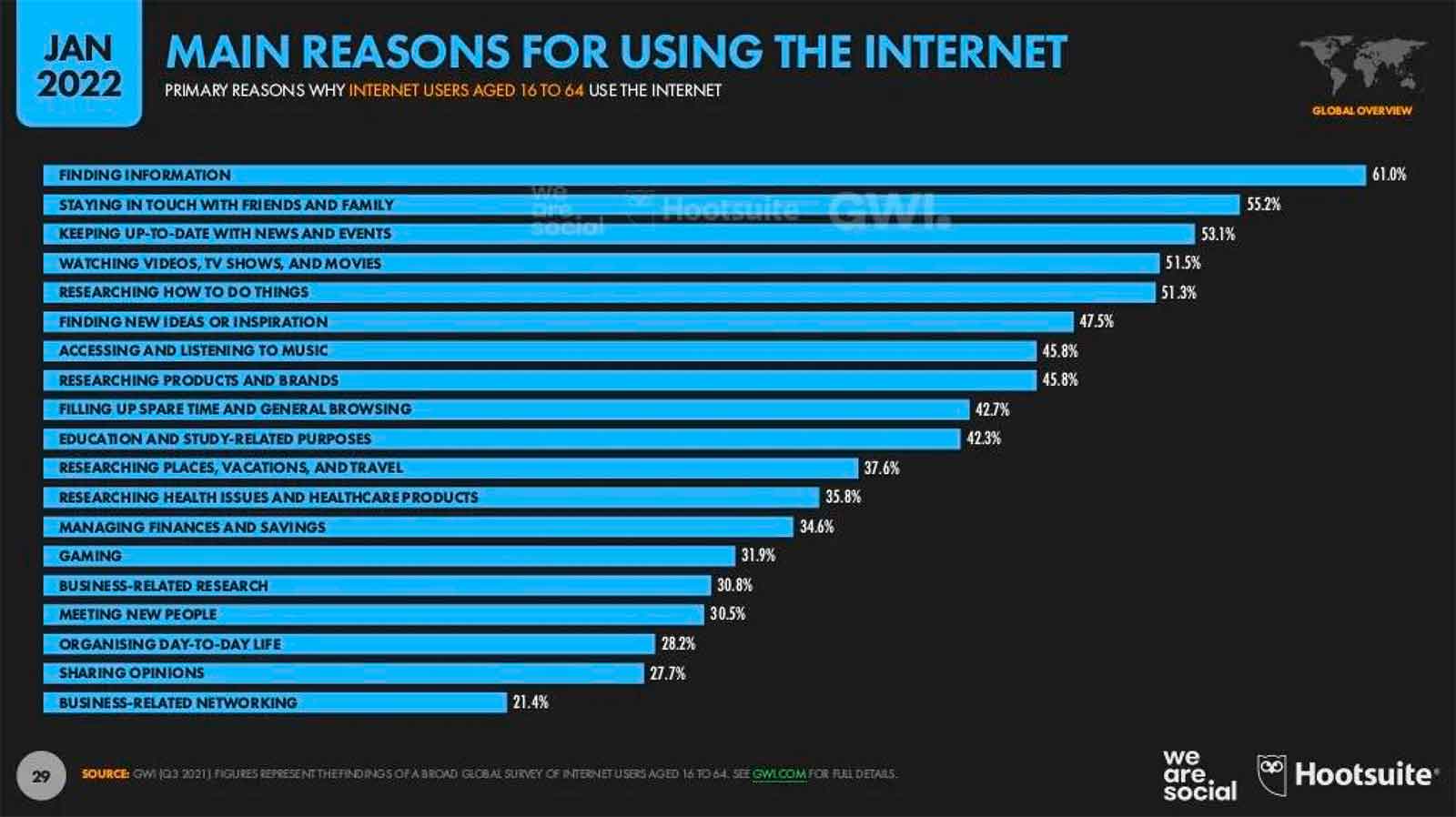 Esto está en consonancia con el más reciente informe de We Are Social que indica que la principal razón de los internautas para estar en la web es… buscar información.