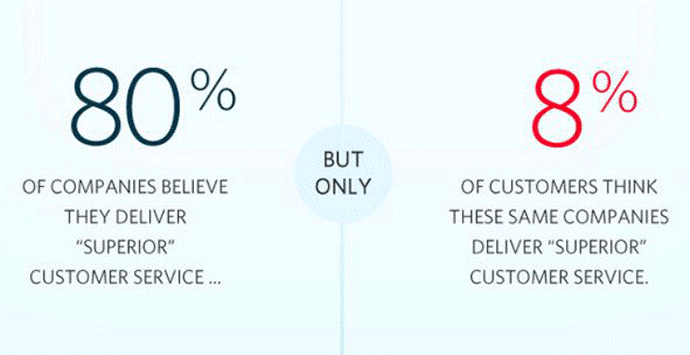 80% de los negocios creen que proporcionan servicio al cliente extraordinario y solo 8% de los clientes cree eso.