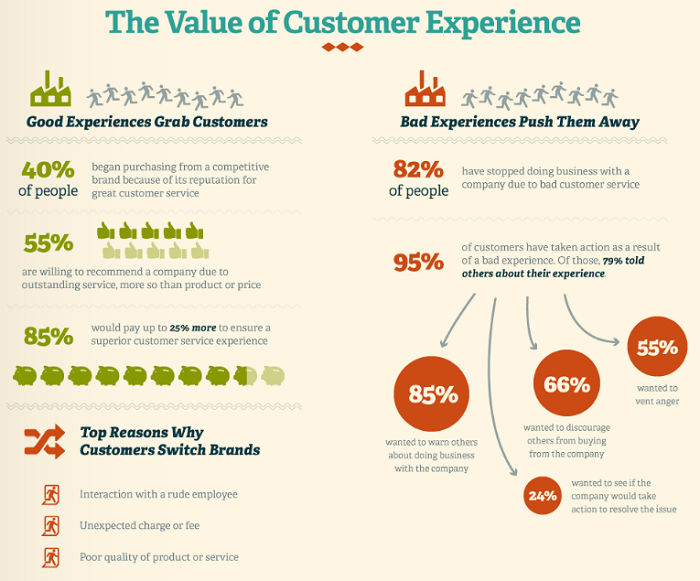 No solo tiene que ver con que si la tienda está limpia o si las personas te tratan bien cuando entras por la puerta. Se trata de construir una infraestructura completa para garantizar que se satisfagan las necesidades del cliente y de alguna manera su vida es mejor como resultado.