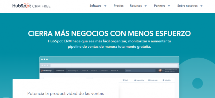 ¿Vendes software?, ¿Qué tal si das herramientas freemium? HubSpot obsequia las funcionalidades básicas de su CRM.