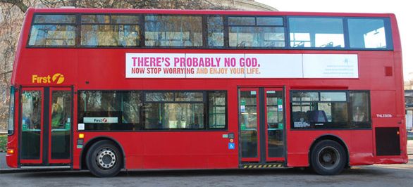 Para comenzar hablemos de la reciente campaña manoseada hasta el cansancio por muchos blogs de publicidad. Aquella que la British Humanist Association (BHA ) difundió en los autobuses de Londres, Birmingham, Manchester y Edimburgo y después brincó a otros países como España y Canadá. La campaña consistía en un cartel publicitario en los autobuses donde se podía leer: