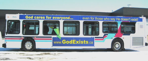 «Dios cuida de todos, incluso de aquellos que dicen que no existe» e invitaba a visitar el sitio www.godexists.ca