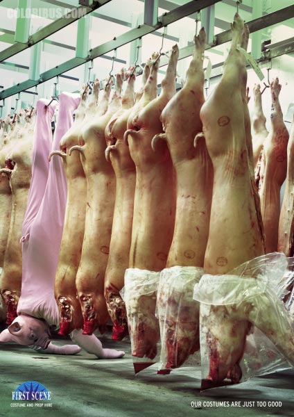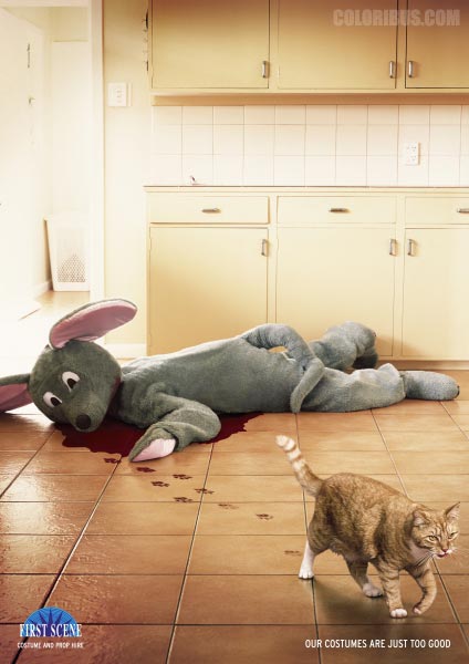 Brillante campaña para First Scene, tienda de disfraces en Nueva Zelanda. La figura retórica explotada es la metonimia en su versión causa-efecto, situación que es reforzada en su copy: Nuestros disfraces son simplemente muy buenos.