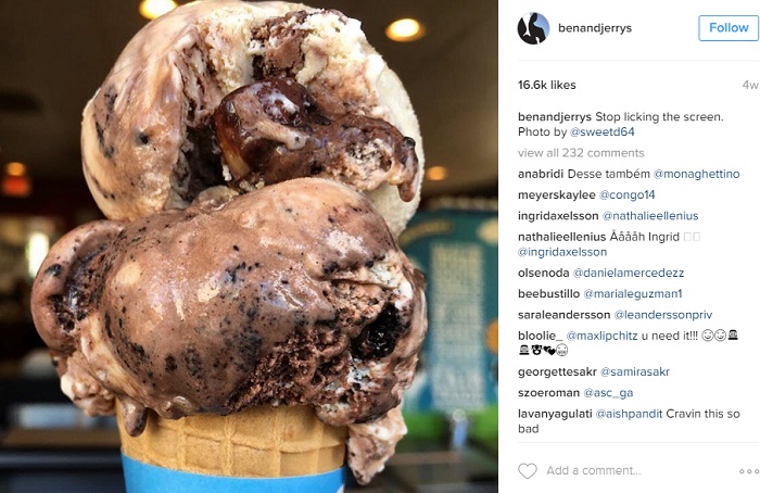 Ben&Jerry’s cuenta historias, entretiene y provoca a los seguidores con las descripciones. Mira los comentarios que consigue.