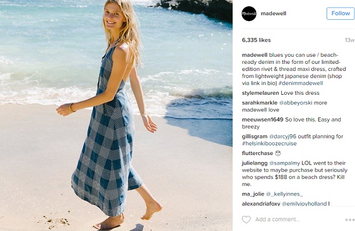 Madewell describe a los productos en las descripciones y les da ideas a los seguidores como y donde pueden usar sus productos.