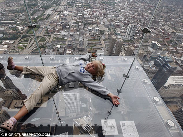 El balcón transparente es apodado «El anaquel» («The Ledge«) y ya abrió al público; los adultos, acostumbrados a pensar en el cristal como frágil, dudan en subirse a la nueva atracción pero para los niños es todo un juego. La infografía en la galería puede dar una idea real de la magnitud de esta obra.