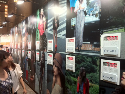 Ahora nos encontramos con esta aplicación en Japón, en el centro de Ginza (justo en el pasillo central que cruza el centro comercial Lumine que hay en el cruce en el que está la Sony Tower). Se trataba de una colección de imágenes que tenían todas una alegoría del botón Like de Facebook. Uno podía dar click en él y obviamente el contador aumentaba.
