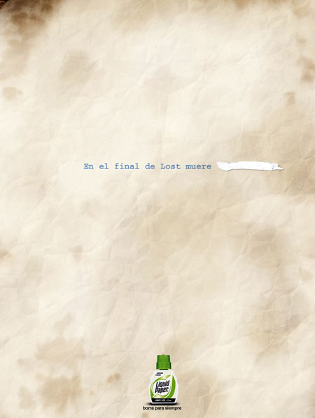 Publicidad genial NO es publicidad funcional; no me cansaré de decirlo. Sí, todo mundo está enamorado de la serie televisiva Lost y todos especulan sobre su desenlace, pero ¿cómo beneficia esto a mi producto?, ¿por qué debería comprar Liquid Paper porque borra el nombre del personaje que muere al final?, ¿Qué obtengo yo, como beneficio tácito por adquirir esta marca?