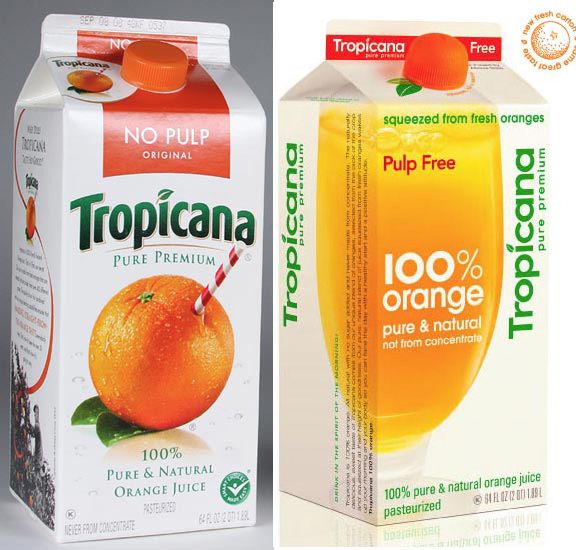 Tropicana había rediseñado su envase, para lograr un look menos tradicional pero más limpio y contemporáneo. El resultado, la verdad, no era malo. De hecho, la forma de la tapa con una naranja resultaba innovadora y graciosa.