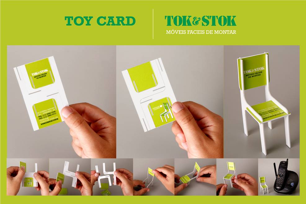 Así lo resolvió DDB Brasil para la compañía Tok&Stok, diseñándoles una brillante tarjeta que a base de suajes logra ser una plantilla de un pequeño mueble. Gracias a su buen diseño, aún cuando el usuario desprenda las piezas de la plantilla y ensamble el pequeño objeto de cartón, los datos son perfectamente visibles en el asiento y respaldo de una silla. ¿Usted cree que alguien va a tirar esa tarjeta o la va a olvidar? Siempre lo he dicho: La tarjeta de presentación debe ser inolvidable.
