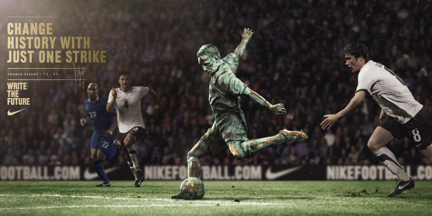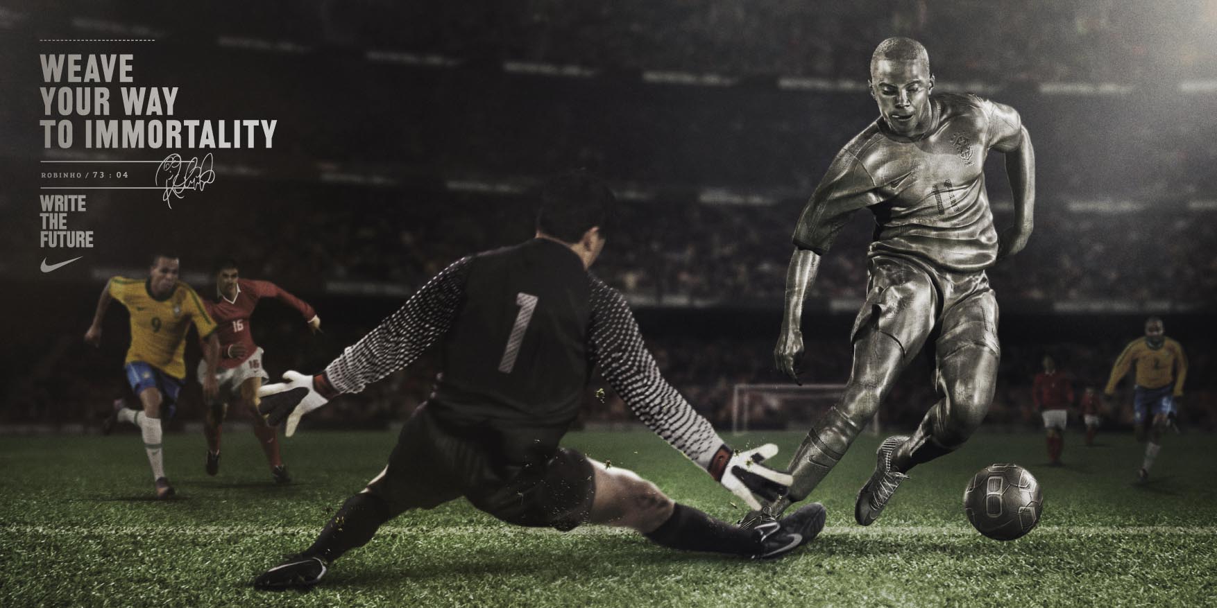 Los diseños muestran a los jugadores estrella patrocinados por la marca, en acciones de fútbol, pero esculpidos cual estatuas de diferentes materiales, haciendo alusión a que su juego quedará para la posteridad… «Escribe el Futuro