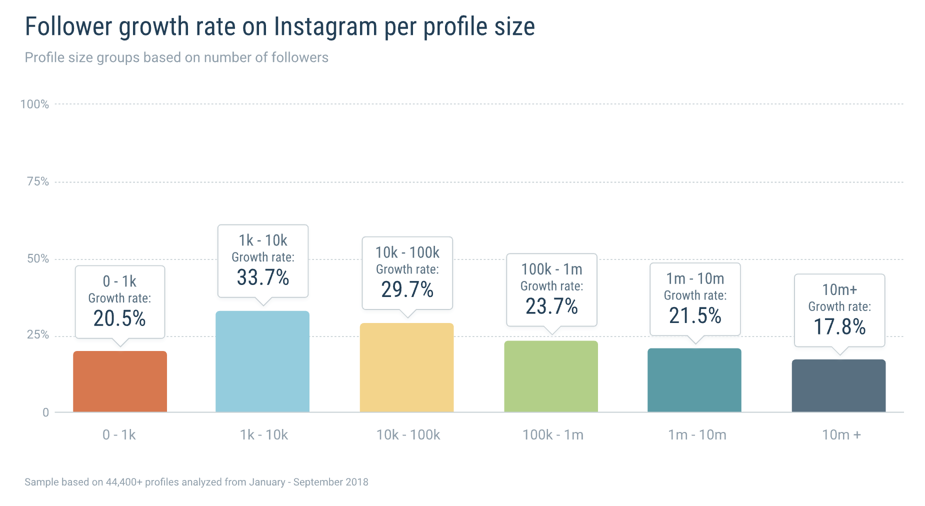 Las cuentas que más rápido han crecido en el 2018 (de enero a septiembre) son las del segmento de mil a diez mil seguidores (33,7%), seguidas por las de diez mil a cien mil (29,7%).