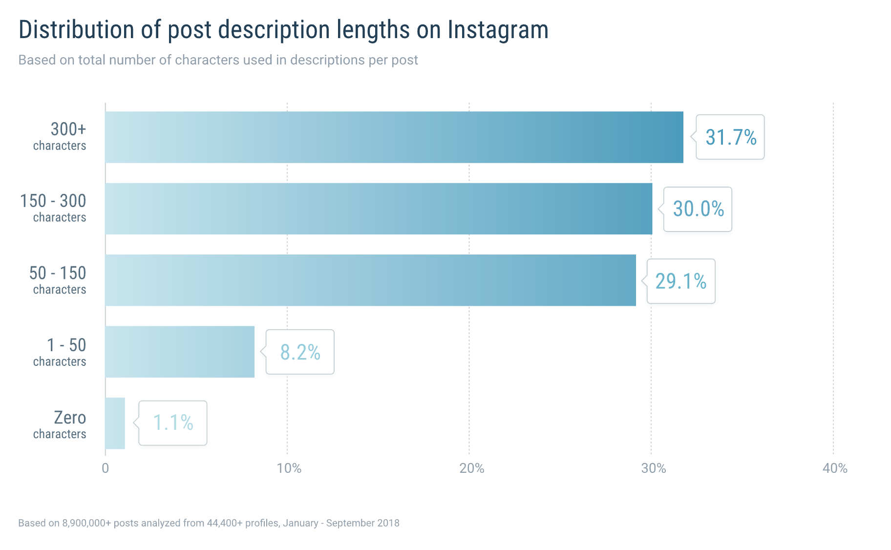 ¿Qué tanto influye que pongamos una larga descripción en Instagram para lograr interacción?, ¿cuántos lo hacen?, ¿cuál es el promedio de caracteres?