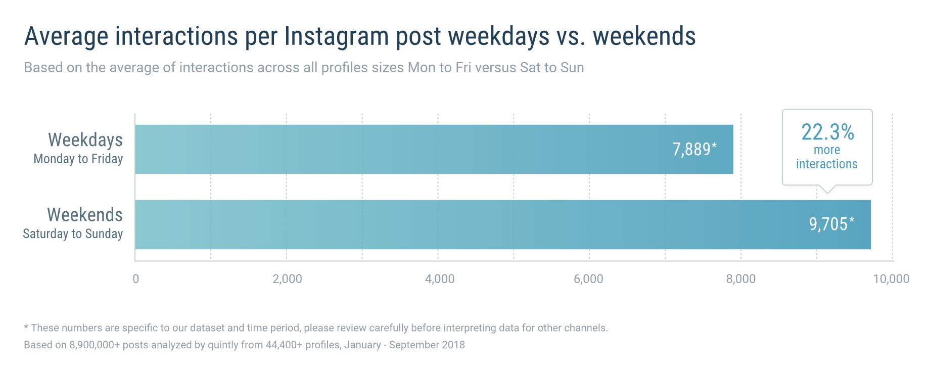 Hazte la pregunta: ¿cuándo estás principalmente en Instagram? ¿No es más probable que pases más tiempo en la red social los sábados y domingos que en un día laborable?