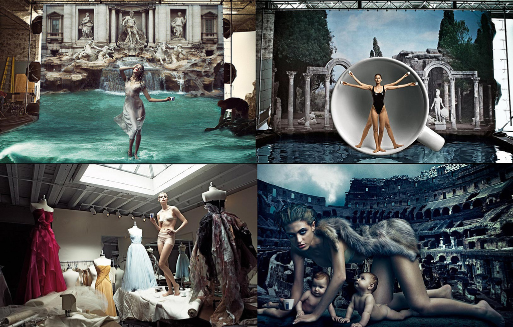 2949687169_233f291337_bNuevamente la prodigiosa lente de Annie Leibovitz entrega un trabajo extraordinario. Se trata del calendario 2009 para la italiana compañía cafetalera Lavazza. El diseño de las fotografías está cuidadosamente trabajado con un dirección artística impecable que rememora con cuadros contemporáneos, escenas de la cultura italiana, mismos que son aderezados con un pequeño acento de café (que hay que decirlo, se siente un poco forzado).