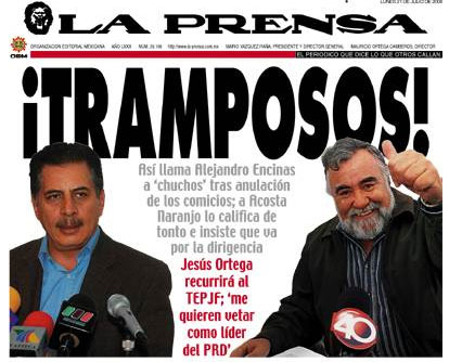 Tanto la infografía del Universal (que por lo general es muy buena), como la foto del Reforma son 2 grandes piezas gráficas que destacan bastante, pero mira que poner en éste blog la portada de un periódico como la prensa, caray!. Yo soy un abierto simpatizante del PRD y reconozco que una elección como la del partido ha sido una estupidéz, pero darle crédito a un copy del periódico la prensa es igual de bajo que cualquier compra de votos o embarazo de urnas. Para la próxima podrías buscar alguna portada del «semanario de lo insólito» o del «alrma», te aseguro que ahí también hay copys acompañados de fotos más impactantes y llamativas e igual de malintencionadas.