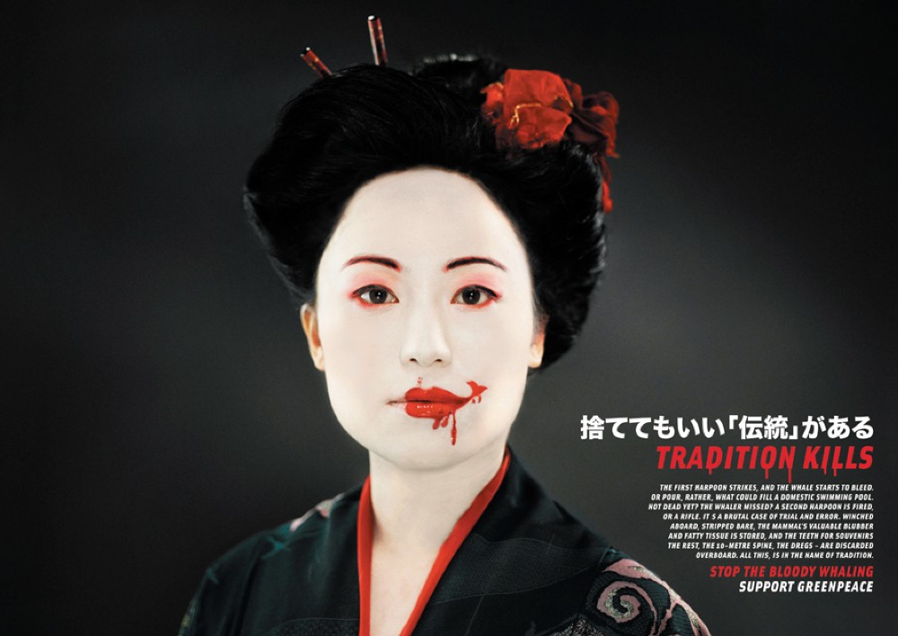 • Mencion especial para el cartel sobre la caza de ballenas en Japon, muy creativo, estetico y realmente agresivo (relacionando la cultura japonesa misma con la matanza), quizas demasiado agresivo, pero igual y no hay otra forma de llamar consciencia en este tipo de temas.