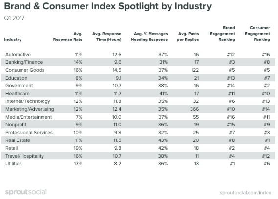 • Tiempo de respuesta – cuánto tiempo le toma a las marcas (en horas) para responder a los mensajes o comentarios que necesitan respuesta.