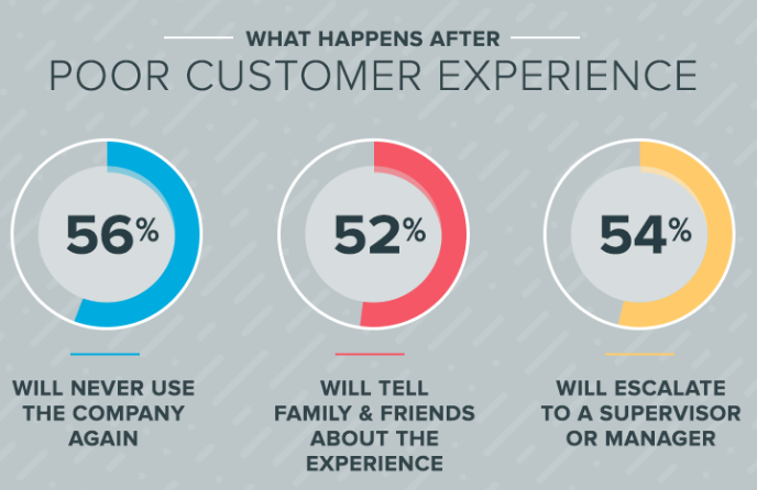 • El 58% de las personas dicen que nunca volverán a usar la compañía después de una experiencia de servicio al cliente negativa. (NewVoice)